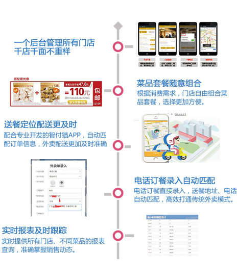 采用云服务技术,所有门店统一后台管理,可以根据不同门店要求自由选择菜品、价格,完美实现餐饮连锁企业千店千面不重样。