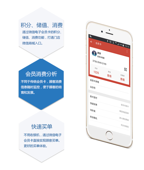 充分利用微信的强大社交功能,绑定微信电子会员卡,时刻掌握顾客消费情况,激活顾客消费习惯。